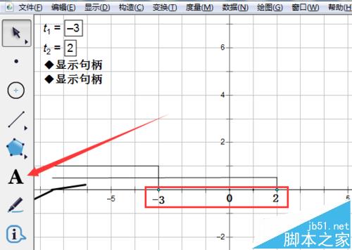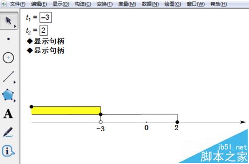 14、单击自定义工具---线工具---石岩不等式区间阴影工具,在公共部分画一个矩形,然后隐藏两个控制点,这样解集就画好了。结果成图见简介。