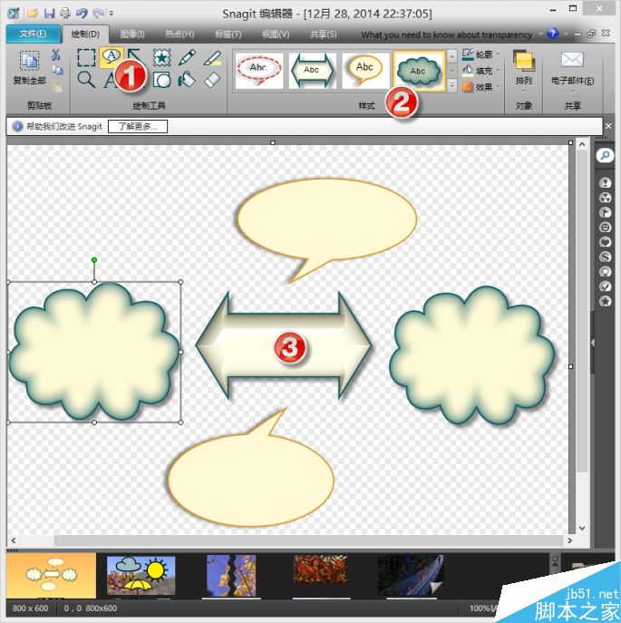 首先用抓图编辑器开启一张空白画布,或打开一张背景图片。点击“绘制”菜单下“绘制工具”面板中的“标注”工具按钮。接下来,在标注“样式”列表中选择框图中要标注的样式图标,在画布中的合适位置“画”出框图组件。双击每个一组件,都可以在其中写入文字,且文字大小和颜色也可以自定义。