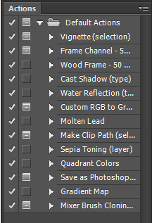 当你打开Photoshop CC操作面板会看到这样一个界面,注意所有的动作都可以立即使用。