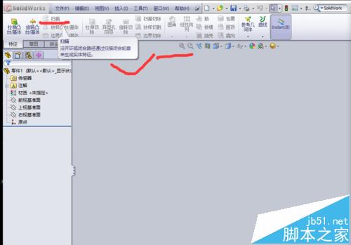 1、打开solidworks2010。在使用扫面之前我们先来了解一下什么是扫描。扫描指的是沿某一路径移动一个剖面建立的基体、凸台或切除(这是solidworks官网的定义)。我们将鼠标移动到扫描特征图标上面,停留大约2秒,就会出现解释。