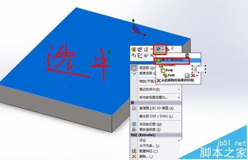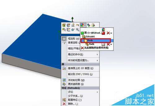 5、改整个solidworks零件颜色的方式和前面一样,只是选择的时候按下图进行选择,我们把整个solidworks零件变为蓝色。