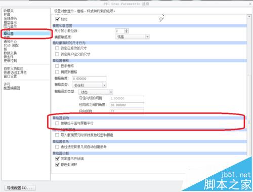 2、选择左侧的“草绘器”设置,在右侧菜单栏找到“草绘器启动”选项。