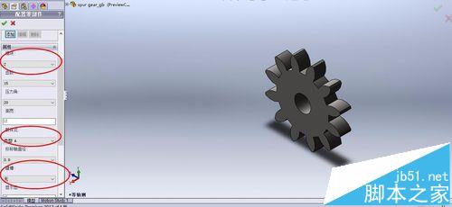 4、在上面点击右键“生成零件”,在左边自动弹出配置齿轮设置的属性栏对话框,给出了系统默认的参数,我们可以根据自己的需要来更改。