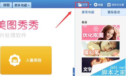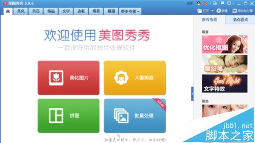 1、打开美图秀秀这款软件,进入美图秀秀的操作界面,如图所示: