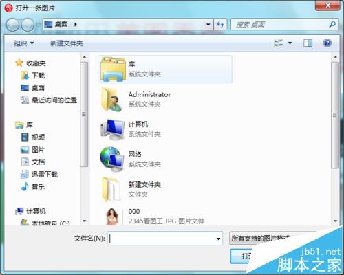 3、点击打开选项后,弹出打开图片对话框,如图所示: