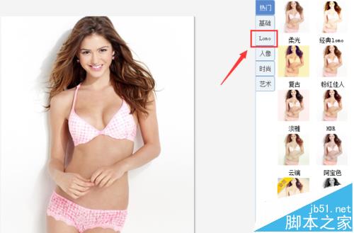 5、在这个编辑操作界面内找到LOMO选项,如图所示: