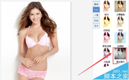 6、点击LOMO选项后,进入LOMO的选择区域,在其选择区域里找到复古黑白选项,如图所示: