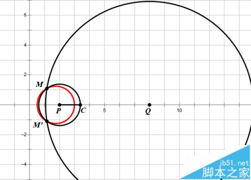10、最后选中轨迹的上下两部分,单击显示---颜色,设置成红色。这样,红色的圆就是所求的动点M的轨迹。