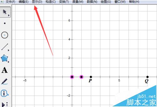 1、单击绘图---绘制点,先画出两个定点P(2,0),Q(8,0)。