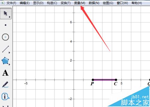 3、使用线段工具在x轴上画出线段AC,选中它,单击度量---长度。