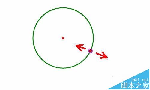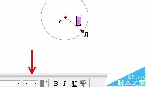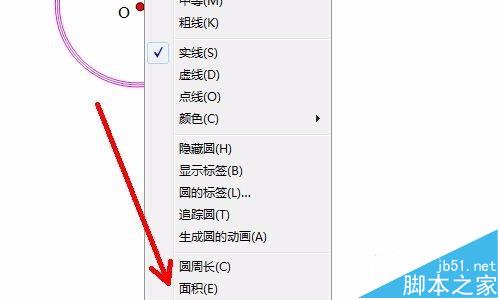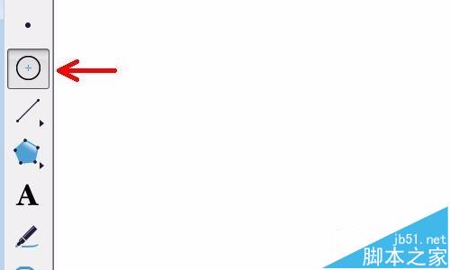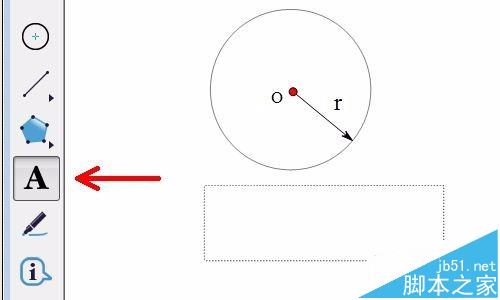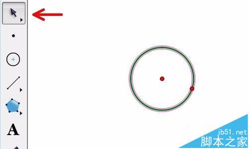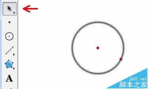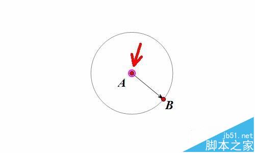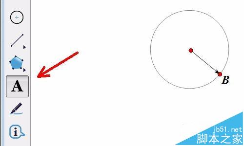 在图上标注圆的半径:选择左边工具栏最下边那个右三角工具,然后选择箭头。从圆心A点画向圆上B点即可。这时我们看到,圆心A点被半径遮住了。这时可以选中A然后向左移动即可。