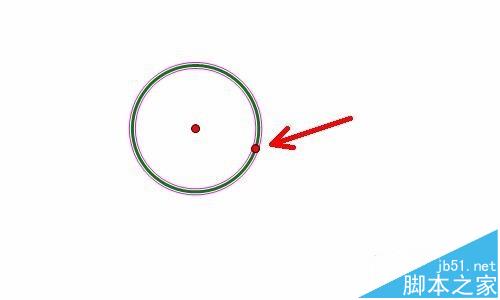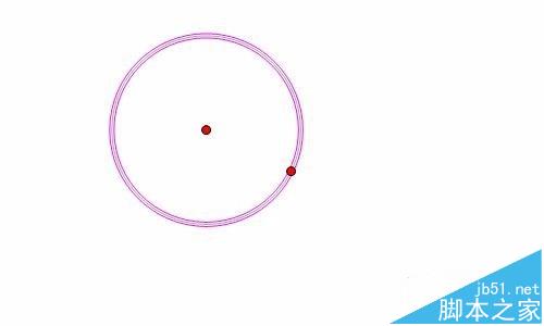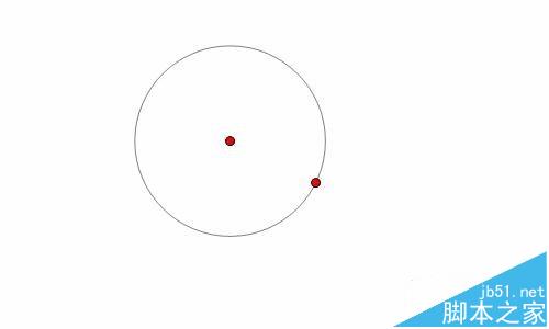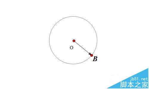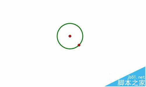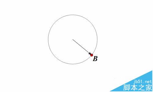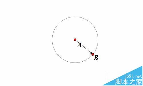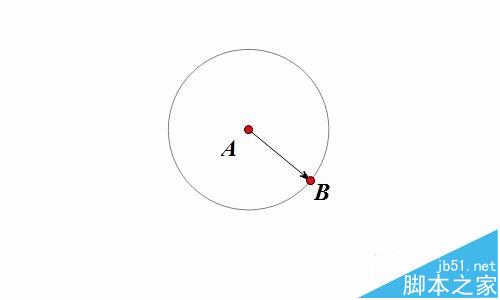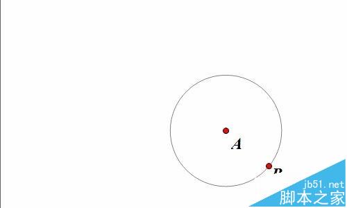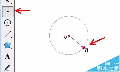 在画圆后,圆上始终有一点B点。如何让这个B点消失呢?选择左边点工具,然后在B点点一下选择好,再按下Ctrl+H,把B点隐藏即可。这下,我们看到一个有圆心,有半径标准的圆画好了。