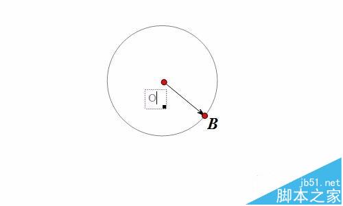 有时,我们想用字母O来表示圆心,如何操作呢。首先选择圆心,然后按下Ctrl+H隐藏起来,圆心那个点和字母A一起隐藏了。这里我们知道,圆心和A被该软件默认为一个整体了。但这时我们仍然想要圆心,可以选择点工具在圆心处点一下。然后选择字体A工具,在圆心附近输入字母O。