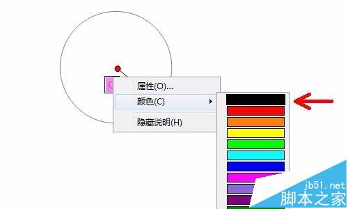 这时,我们看到,字母O显示比较暗,怎么办?那是因为字母O默认显示的颜色不对,我们选择字母O然后点击鼠标右键,选择黑色。这下我们看到字母O显示正常了。同样,我们可以标准半径r,下方可以选择字体大小。然后同样更改颜色为黑色,就好了。
