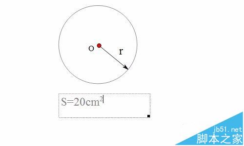 选择圆,然后选择面积。这时图上出现了一个圆面积的标注。其实,这个我们一般用不着,删除即可。我们可以自己输入:点击左边工具A,然后在圆下面画一个框;输入面积。这里的平方厘米怎么输入呢,下面有个π√2/3,点击一下这个,有个y的x次方,点击这个输入就可以啦。然后选择颜色黑色,就使得面积的显示清楚了。