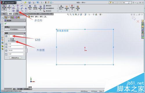 2、点击多边形,边数填写12,选择外接圆,圈的大小随意,后面会修改