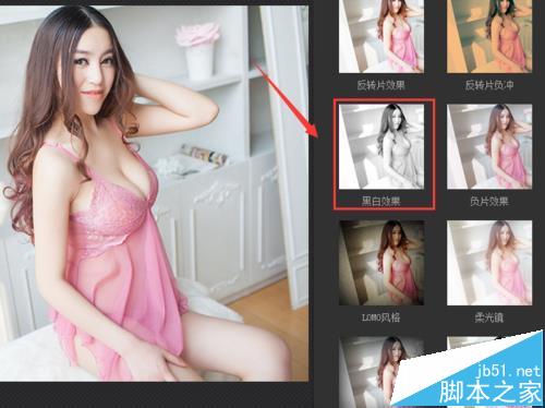 5、点击黑白效果选项后,我们的照片自动应用该效果,如图所示: