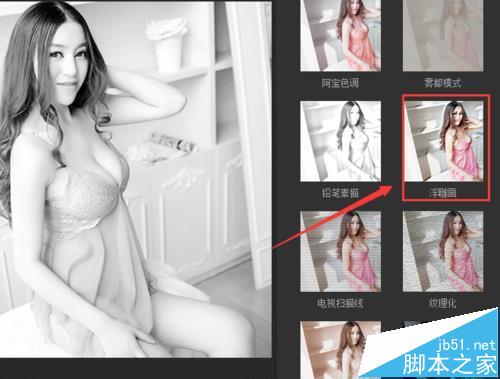 6、再次在数码暗房的选择区域里找到浮雕画效果选项,如图所示: