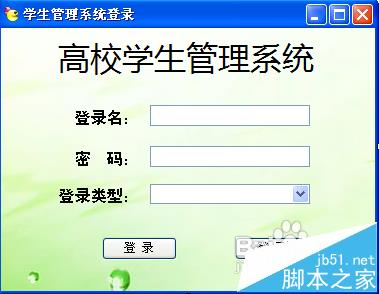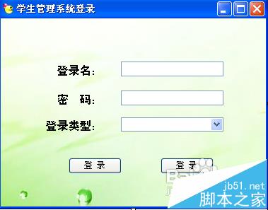 9、界面做好了,点击软件的运行调试按钮看看效果:软件运行按钮:运行后,看看是不是弹出一个登录框,但是你点击登录是不是没有反应,别急,现在还没有给窗体写事件,运行结果如图: