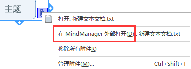 2、点击在MindManager外部打开:文件名(这里的文件名就是要打开的文档),或者点击附件图标时按住 CTRL。