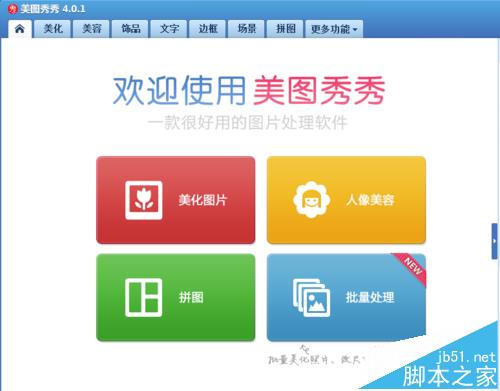 1、打开美图秀秀这款软件,进入美图秀秀的操作界面,如图所示: