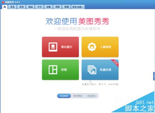 1、打开美图秀秀这款软件,进入美图秀秀的操作界面,如图所示: