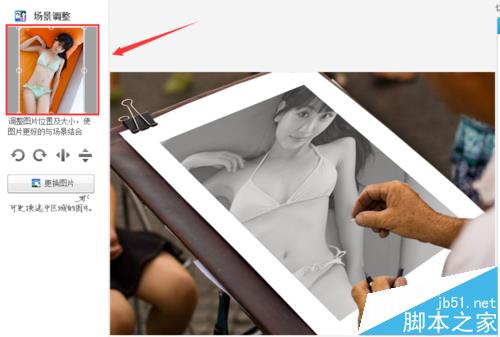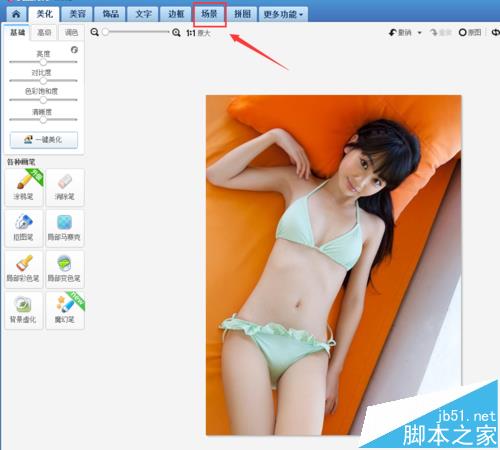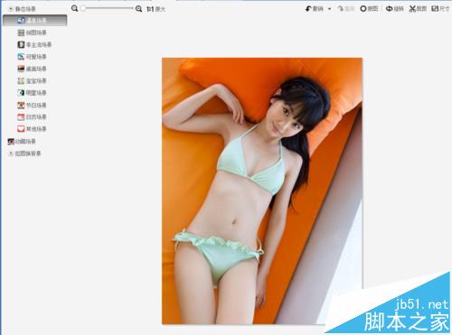 8、点击完成旋转,进入图片编辑界面,在上面的菜单里找到场景选项,如图所示: