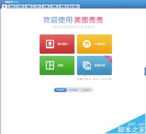 1、打开美图秀秀这款操作软件,进入美图秀秀的操作界面,如图所示: