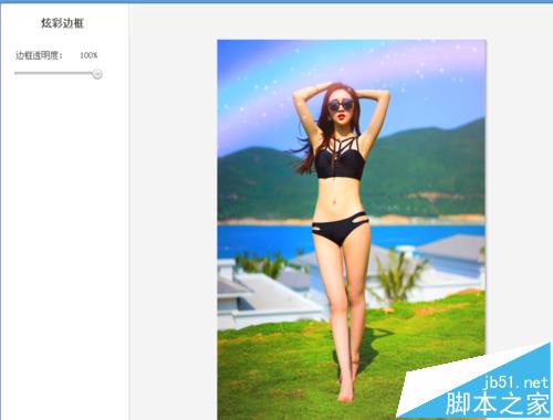 12、在这个对话框内设置透明度为100,点击确定,我们的亮丽彩虹图片就制作完成了,如图所示: