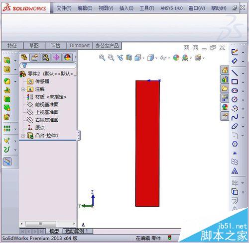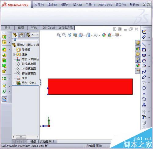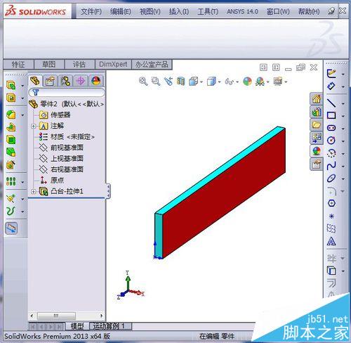 1、建好的solidworks模型,为了便于显示,将模型颜色设置为蓝色,将要调整的面设置为红色,如图所示