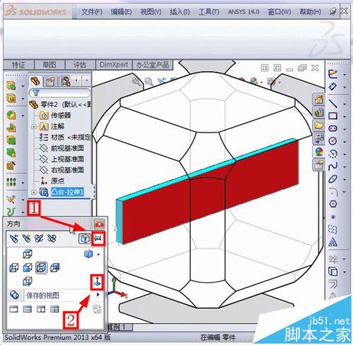 2、选择红色面,弹出对话框,点击“正视”按钮,如图所示
