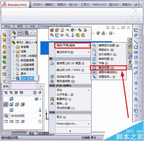 7、在选择红色面,右键,选择“缩放/平移/旋转”选项,再选择“翻转视图”,如图所示