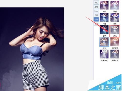 6、点击时尚选项,在时尚的的选择区域里找到逆光选项,如图所示: