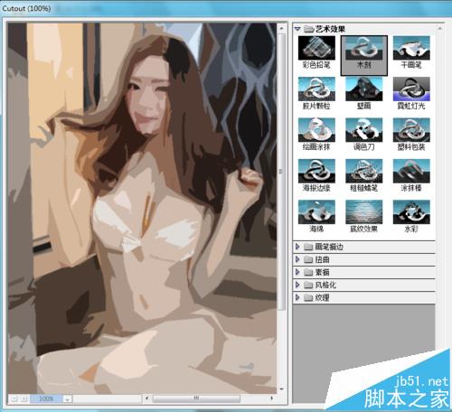 7、点击木刻特效后,进入cutout的对话框,如图所示: