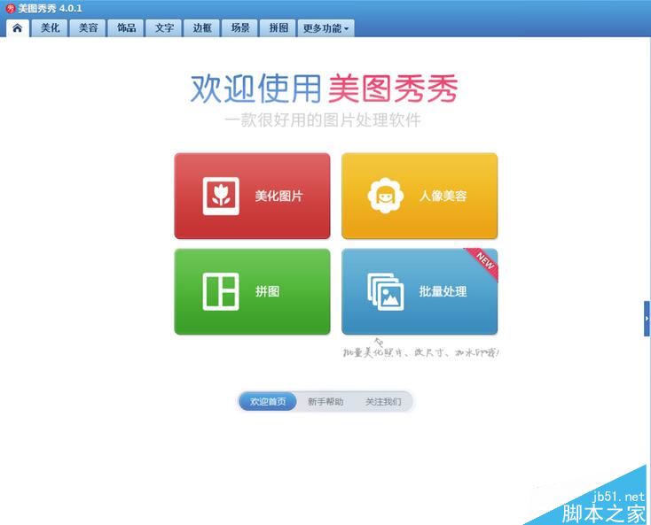 打开美图秀秀这款操作软件,进入美图秀秀的操作界面,如图所示: