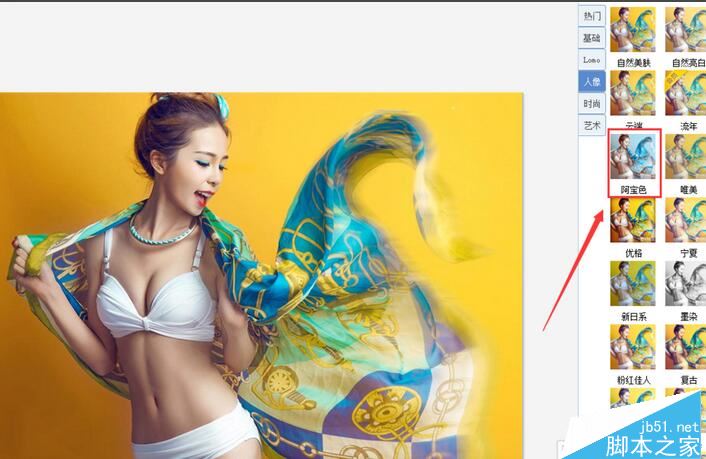 点击人像选项后,在其选择区域里找到阿宝色选项,如图所示:
