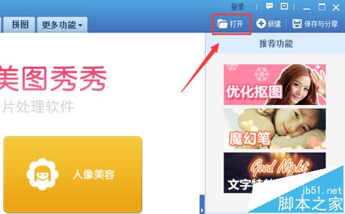 1、打开美图秀秀这款软件,进入美图秀秀的操作界面,如图所示: