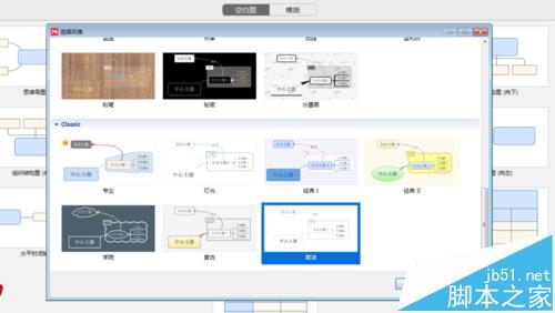 2、点击“思维导图”空白图,打开“选择风格”弹窗,这里选择“简洁”风格,如下图所示: