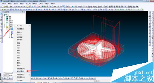 7、选取所有刀具轨迹,点击右键,选择实体仿真,进入仿真界面,点击开始仿真,最后加工效果如图。如果显示刀痕过大,可返回参数调整步进距离。