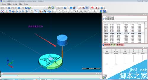4、完成设置后确定生成刀路如图,选择该刀具轨迹,点击右键,选择实体仿真,进入实体仿真界面,点击开始,进行模拟加工,最后加工效果如图。