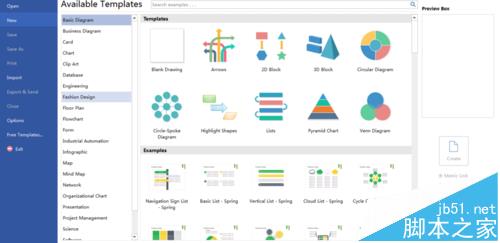 1、打开Edraw Max工具软件,然后依次操作“New---Basic Diagram”,选择模板,如下图所示: