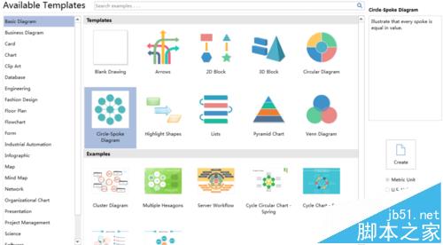 2、在模板中选择“Circle-Spoke Diagram”,然后单击“Create”,如下图所示: