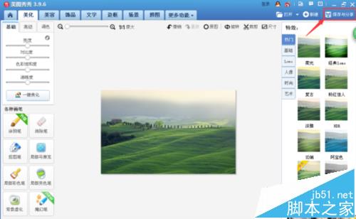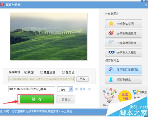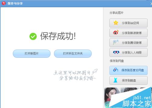 9、我们点击美图秀秀页面右上角的“保存与分享”,弹出“保存与分享”的窗口