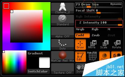 3、笔刷设置完毕后,可以按住键盘上的shift使用这个笔刷。如果感觉笔刷强度太大了,按键盘上的空格键,调出笔刷调整面板,可以调整Z Intensity的参数。