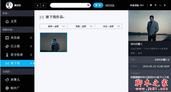 8.在“被下线”的分类,可以查看自己被官方和自己下线的作品的信息。