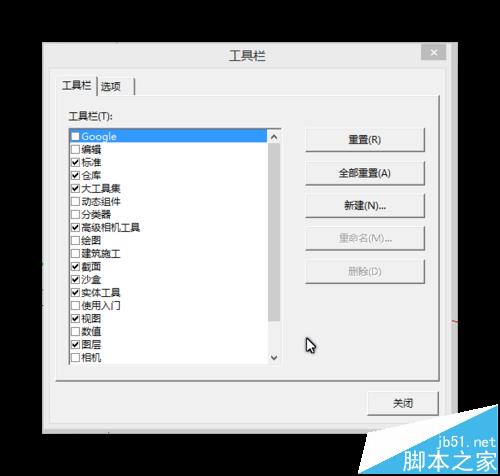 2、之后会弹出工具栏的窗口,找到自己想要的工具栏,把其勾选上即可。勾选后该工具栏,该工具栏就会出现在画面中。