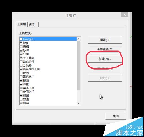 3、出了系统中原有的工具栏,大家还可以根据自己的习惯创建自定义的工具栏,首先像图中一样点击“新建”,然后给工具栏起个名字。这里我建一个铅笔工具栏做示范。起完名按确定后就会出现一个名为“铅笔”的空白工具栏。