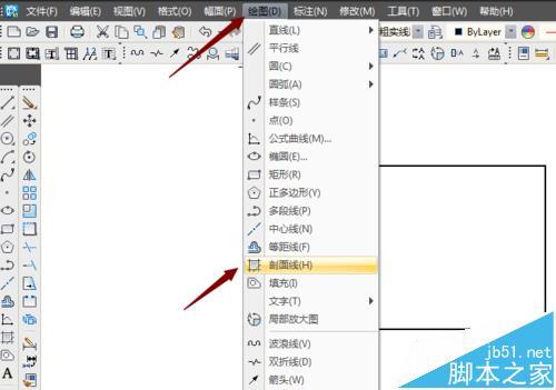 2、在caxa操作页面的菜单里找到绘图,然后找到剖面线。