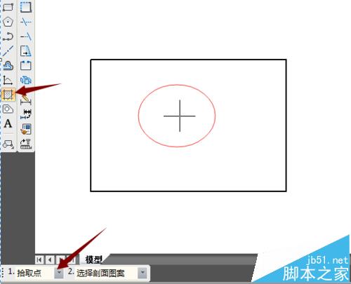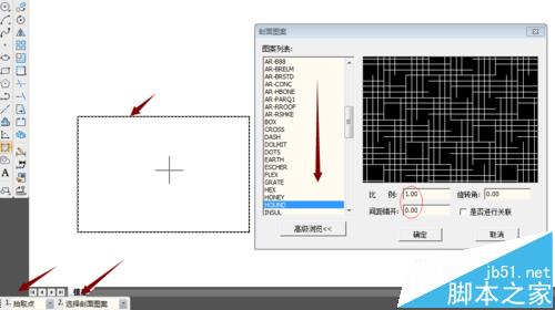 4、根据命令行提示,拾取点即点击图形内部一点,默认选择剖面图案2即可,然后点击回车,弹出图案选择对话框。