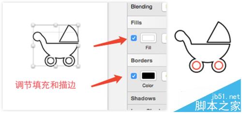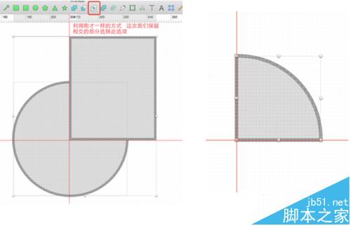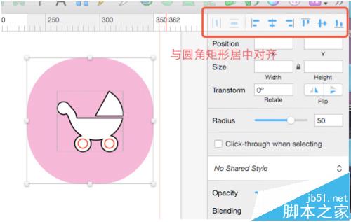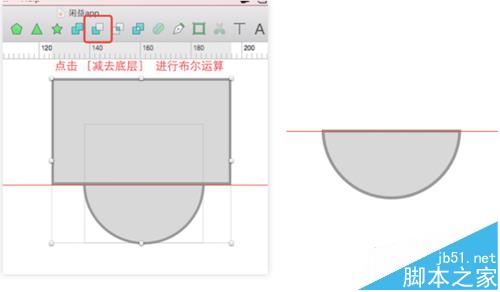3、画一个矩形工具放在圆形中心上方,用矩形减去一般圆形,和ps/ai一样的布尔运算方法,得出婴儿车的车兜。
